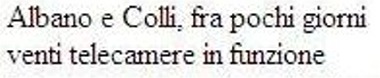 Albano 80 "occhi" in sette paesi trasmetteranno immagini grazie a onde magnetiche alla centrale della polizia del Consorzio dei Colli