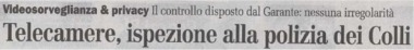 Il Garante per la privacy controlla le telecamere della Polizia dei Colli e non trova nessuna irregolarità